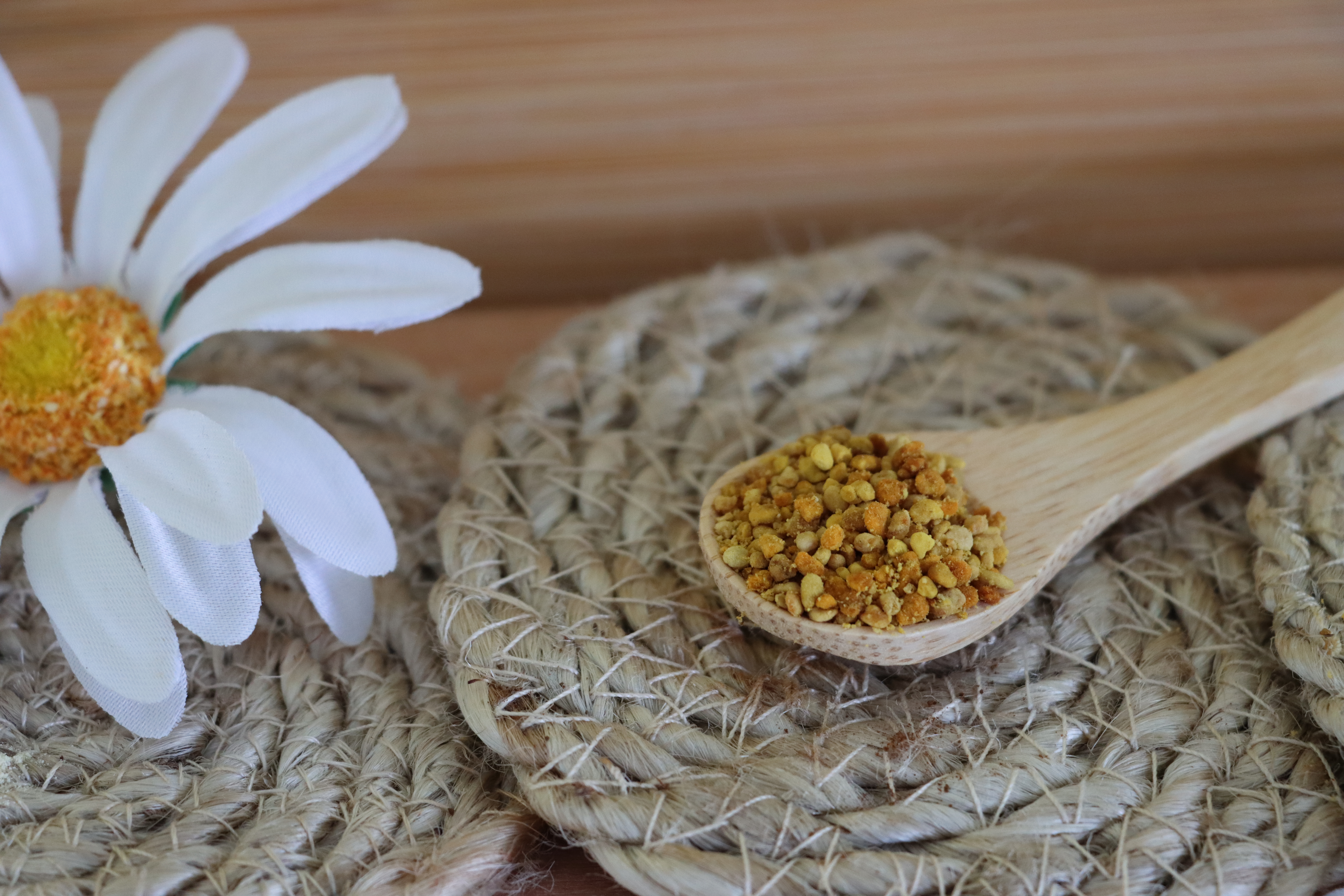 Pollen granules contain a rich composition of nutrients such as proteins, vitamins, minerals, and antioxidants. They are commonly used as a dietary supplement due to their potential ability to support the immune system, increase energy, alleviate allergies, and reduce inflammation. Pollen granules can be added to healthy juices, cereals, salads, or used as a natural sweetener in baked goods. It is important to note that individuals with pollen allergies should exercise caution when consuming them, as they may trigger allergic reactions. It is always advisable to consult a doctor or allergist before using pollen grains as a dietary supplement."